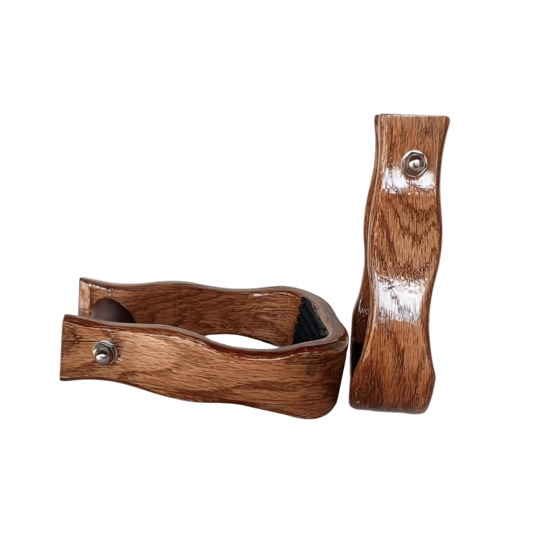 What sets these wood stirrups apart is the ability to customize them to suit your specific needs. Opt for your favorite wood type to match your aesthetic preference or riding gear, from the richness of mahogany to the sleek tones of black oak. Built with a focus on durability, these stirrups offer a superior grip and versatile design for all riders, whether novice or professional. Elevate your riding experience with stirrups that blend innovation, craftsmanship, and flexibility.